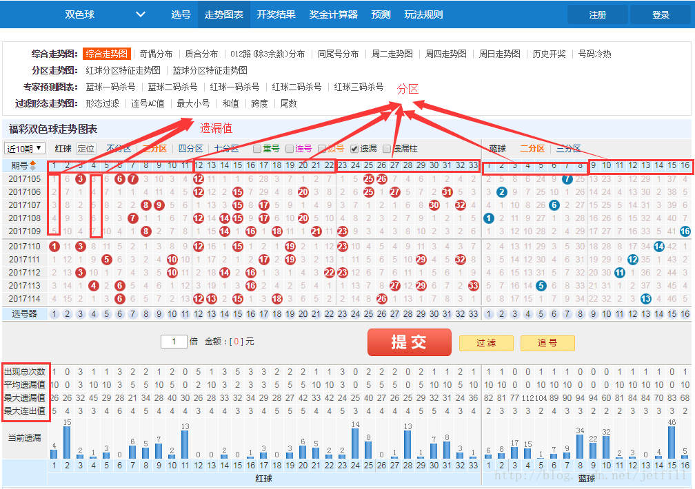冷热号走势:通过统计历史开奖频率,区分近期高频号码(热号)和长期未开号码(冷号)。